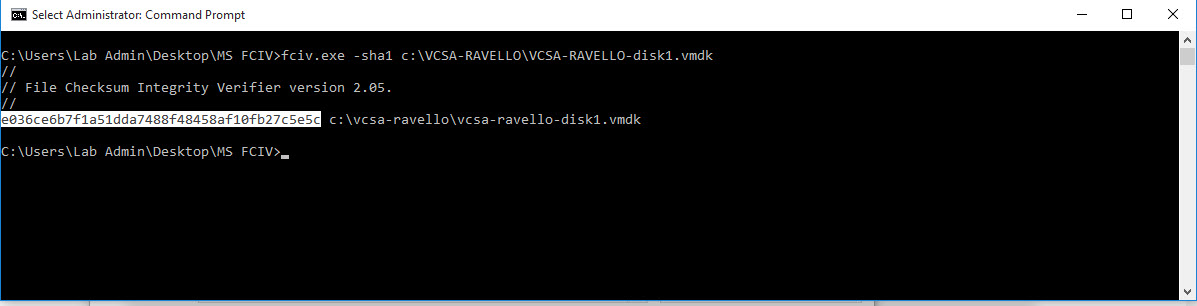 The manifest file (.mf) stores the SHA1 hases for each disk and needs to be updated. Microsoft has a free tool called File Checksum Integrity Verifier (FCIV).fciv.exe -sha1 “path of the vmdk”