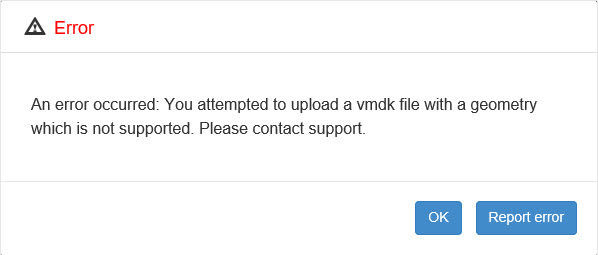 Convert stream-optimized VMDK disks to non-stream-optimized disks before uploading them to Ravello. Per the following Ravello KB article. Download and install QEMU for windows or Linux and run the following command: qemu-img convert -p -f vmdk -O vmdk “original vmdk file” “new vmdk file”