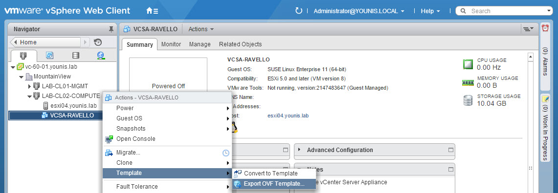 - Now that the VCSA configurations are all done, time to save your hard work to the VM library for future use.