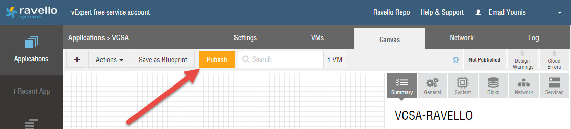 - Login your Ravello account and create a new application. I created one called VCSA 🙂