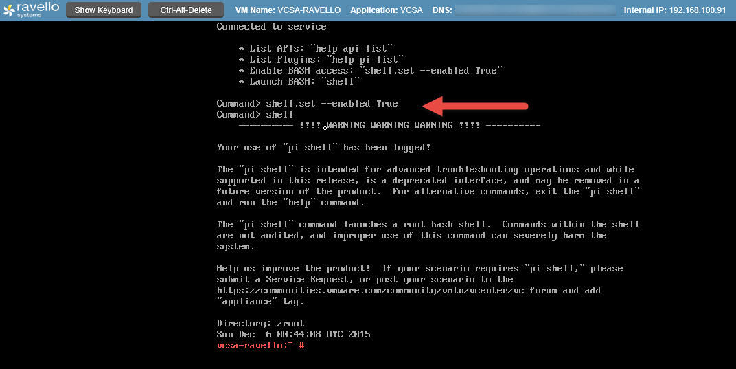 - Type “shell.set –enabled True“, hit enter and type “shell”