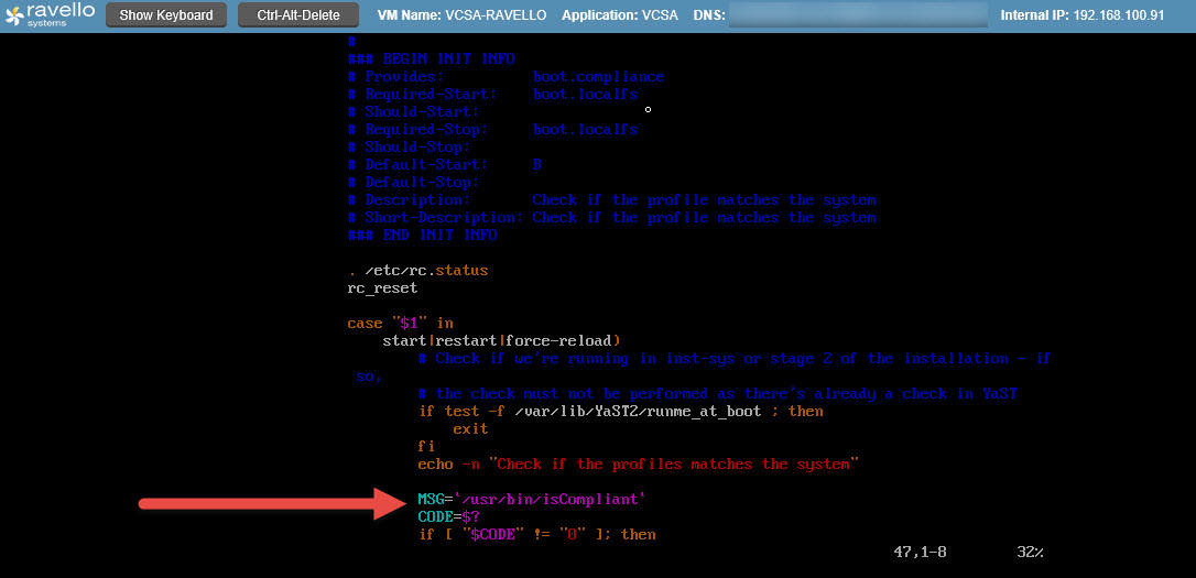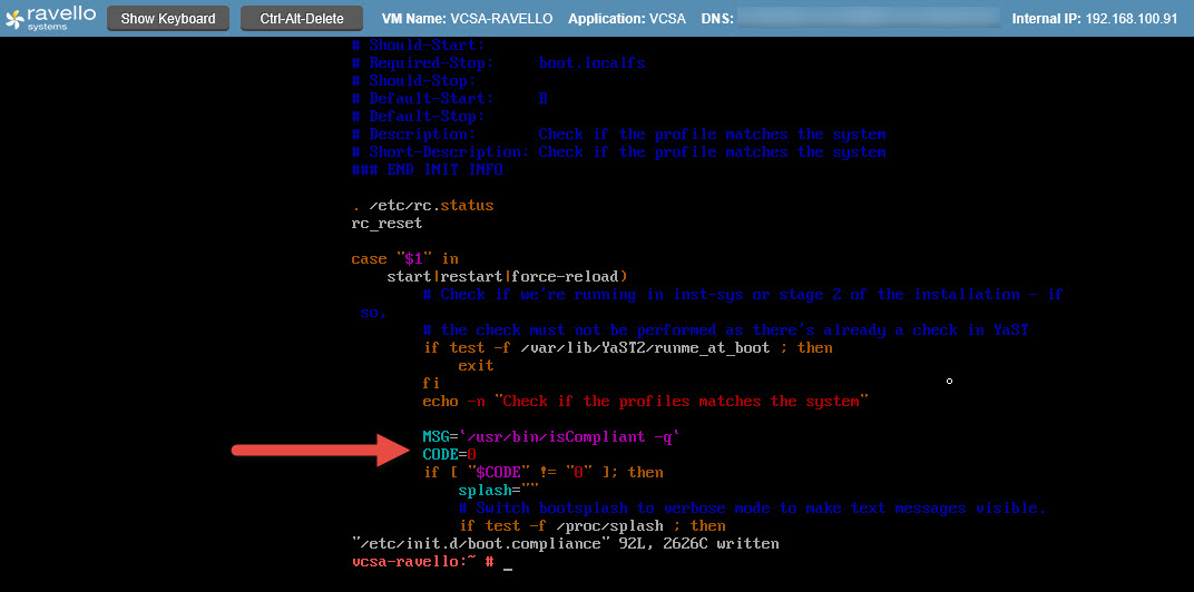 - Edit the boot.compliance script vi /etc/init.d/boot.compliance