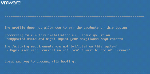 - You will be greeted with the following warning message, for now press any key to continue. The VCSA will continue the start up process.