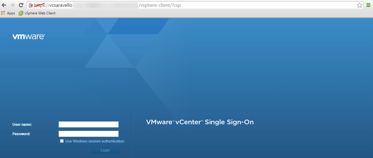 - To access the web client, from a web browser type “https://public IP address of the VCSA/vsphere-client”.