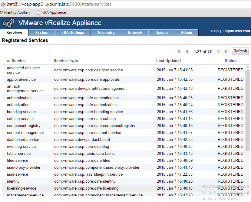 - vRA Appliance: https://vRA Appliance FQDN:5480.