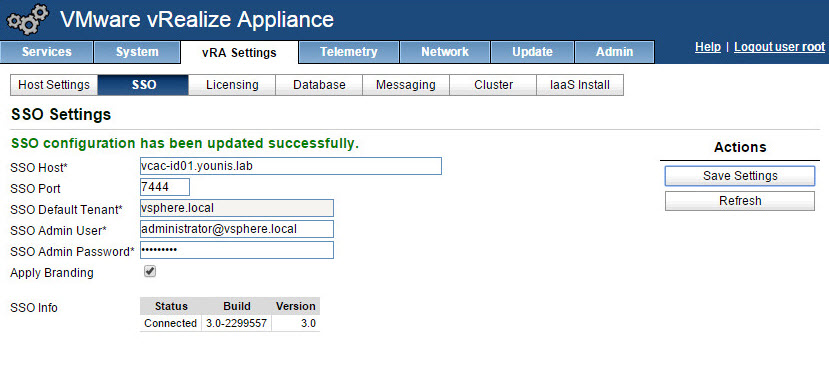 - Log in the vRA Appliance https://vRA Appliance FQDN:5480.