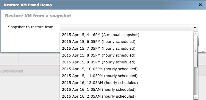 - Select a snapshot to restore from.