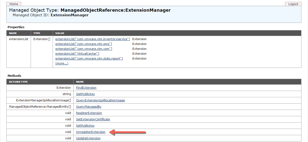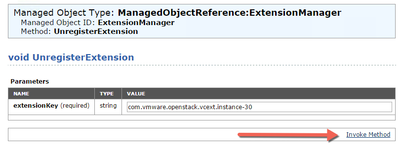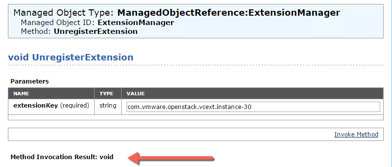 - The VIO plugin remains in vCenter until its unregistered, go to https://IP or FQDN of vCenter>/mob/?moid=ExtensionManger